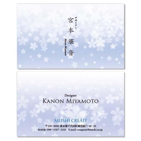 名刺作成 おしゃれ デザイン 和風名刺 Waf072 花影 青色 100枚 Waf072 名刺クリエイト 通販 Yahoo ショッピング